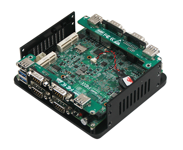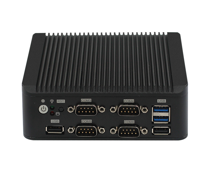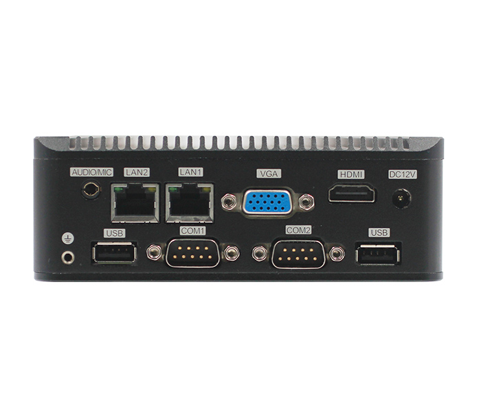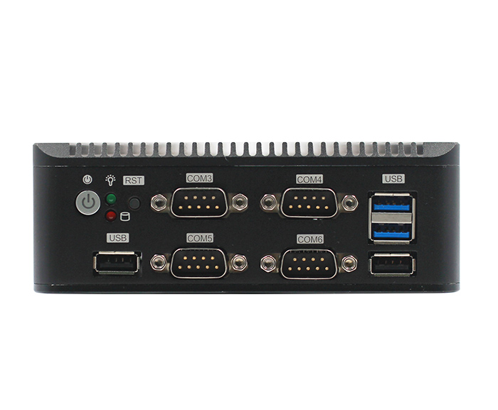 1*HDMI 2*USB3.0 4*USB2.0 2*LAN 6*COM(COM1,2可通過跳帽和Bioses設置選擇為RS232或RS485,RS485支持自動流向控製,COM3,COM4,COM5,COM6為RS232) 1*快速開機按鈕帶指示燈1*複位按鈕 1*DC  1*電源指示燈 1*硬盤指示燈